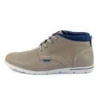 - Zapatilla de cuero tipo botita, acordonada con suela de goma antideslizante