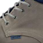 - Logo a presión sobre rombo de cuero cosido en la lengüeta del zapato